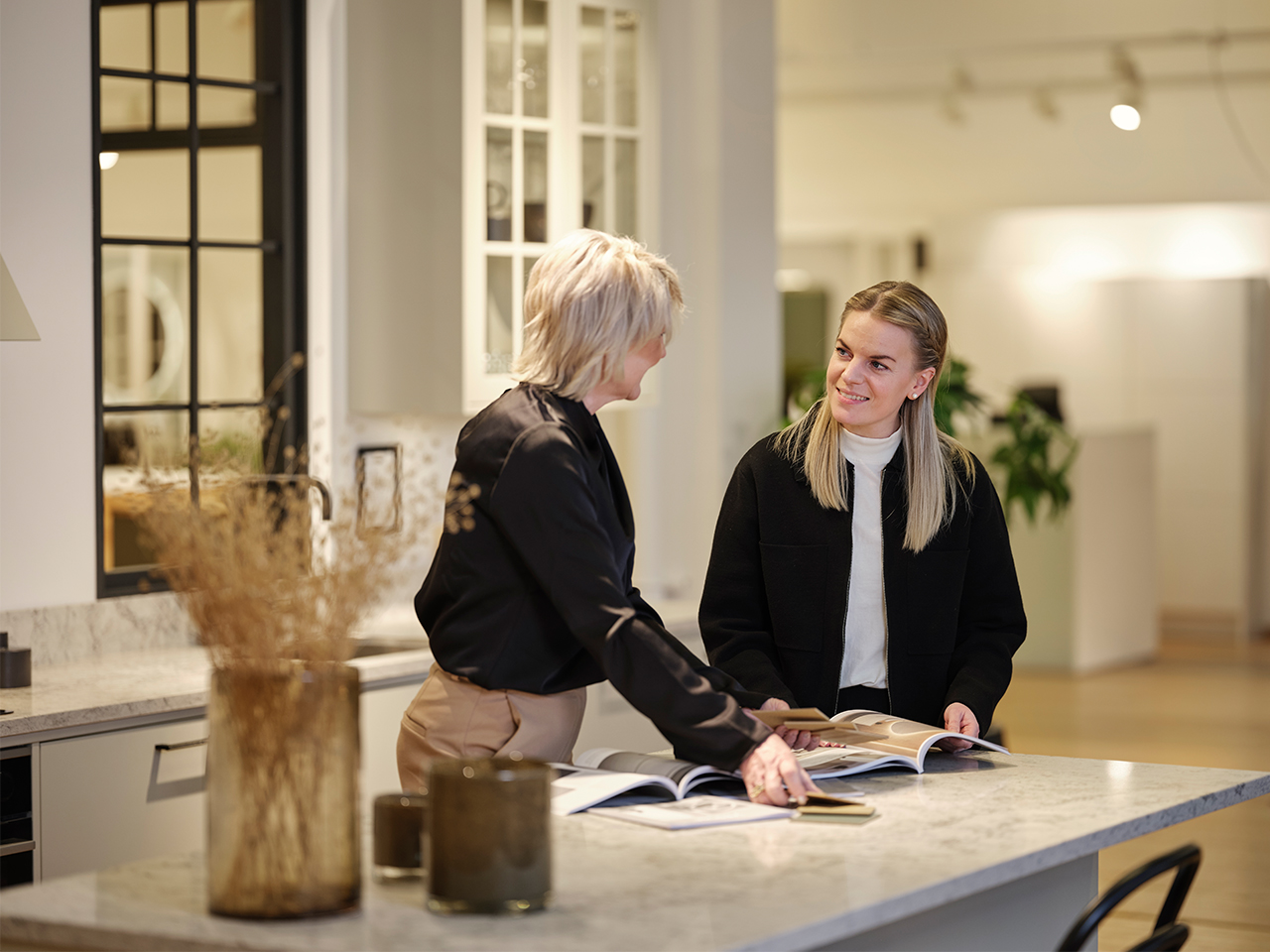 Vi hjälper dig genom hela processen, från planering till montering, och erbjuder ett brett urval av stilar, material och kulörer för att du ska kunna skapa en personlig och hållbar inredning. Våra leveranser sker med fossilfria transporter och inredningen levereras monterad och klar.