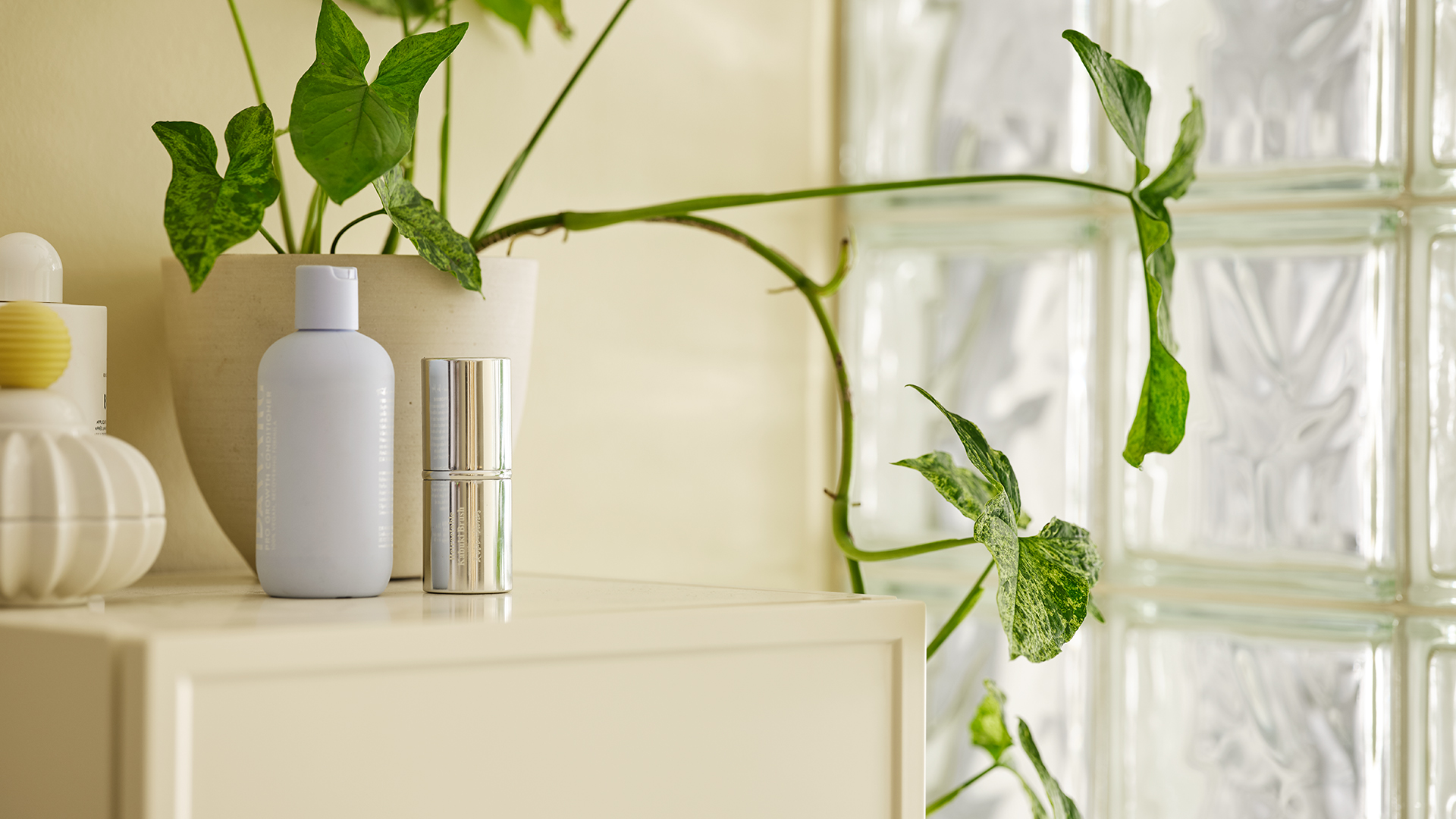 Ett soligt badrum med den eleganta luckan Thea i vår nya kulör cremegul. Med Free i den nya bredden 800 mm kombineras det lätta uttrycket med generösa avställningsytor. Glasblock släpper in ljus och spegeln med de rundade hörnen bidrar till att miljön känns mjuk och inbjudande. På golvet skapar robust natursten med ursprung i Norges storslagna fjordlandskap en vacker kontrast.