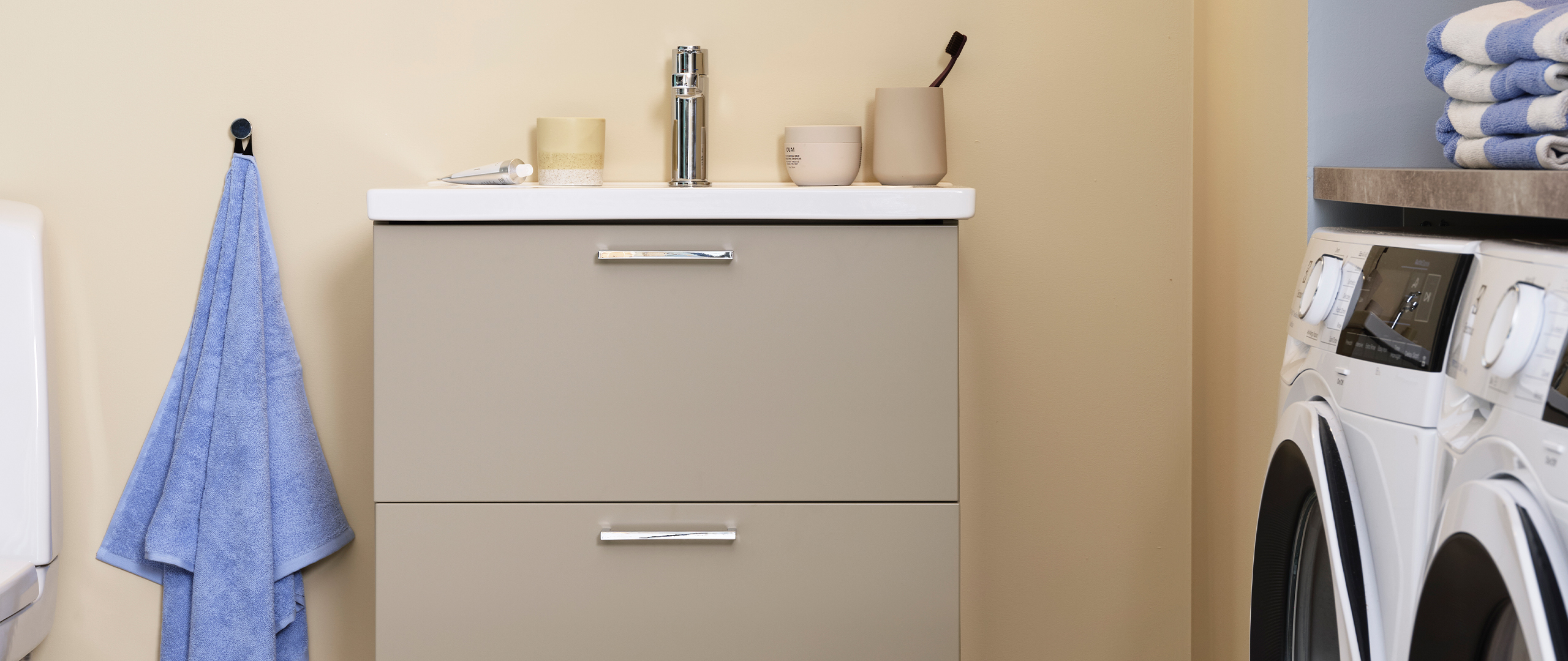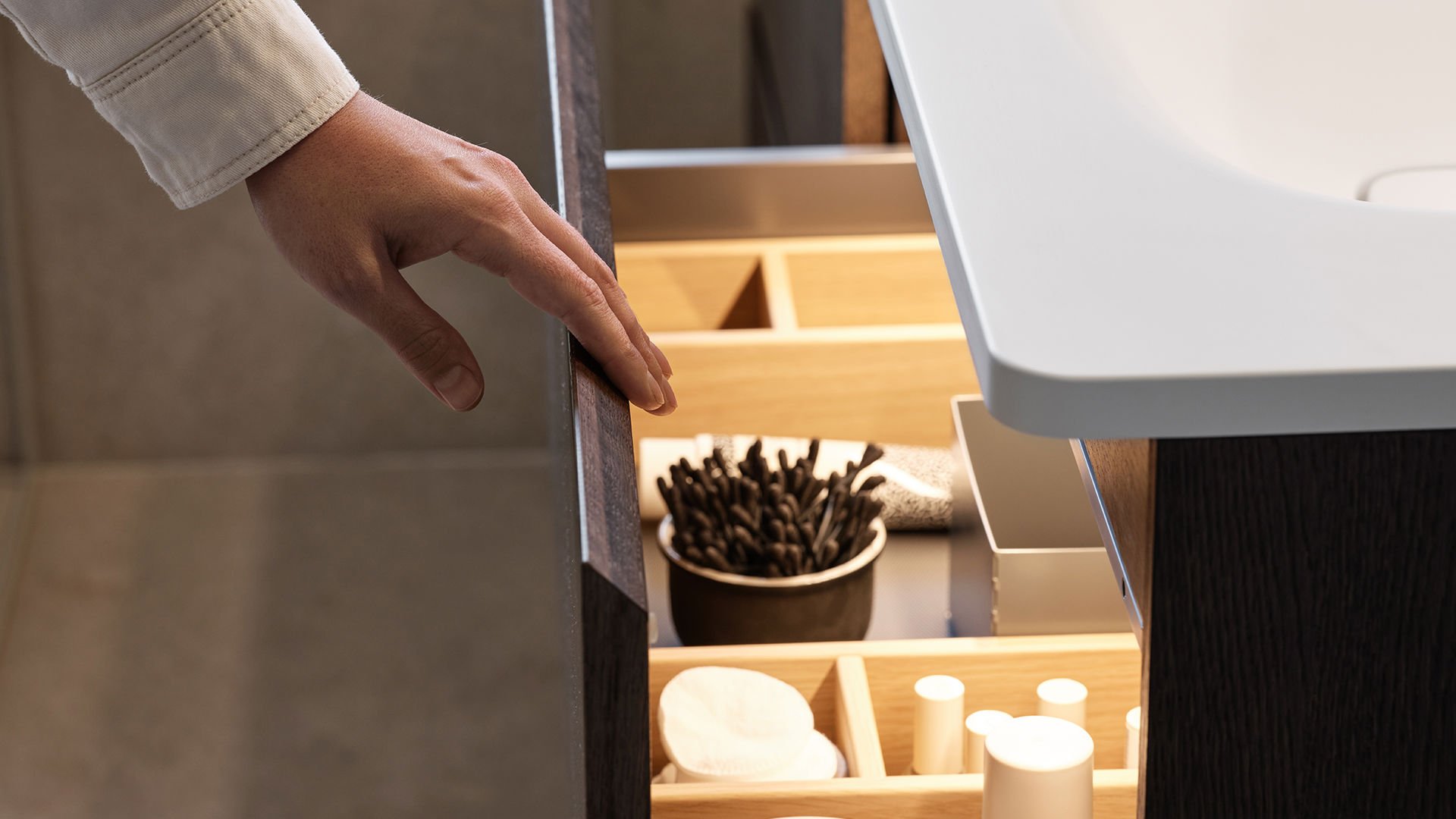 Avskalade och tydliga badrum i ljusa färger, naturmaterial och mjuka, organiskt rundade former. Smarta kombinationer mellan funktion och form. För dig som vill ha enkelhet, funktion och en naturnära känsla.