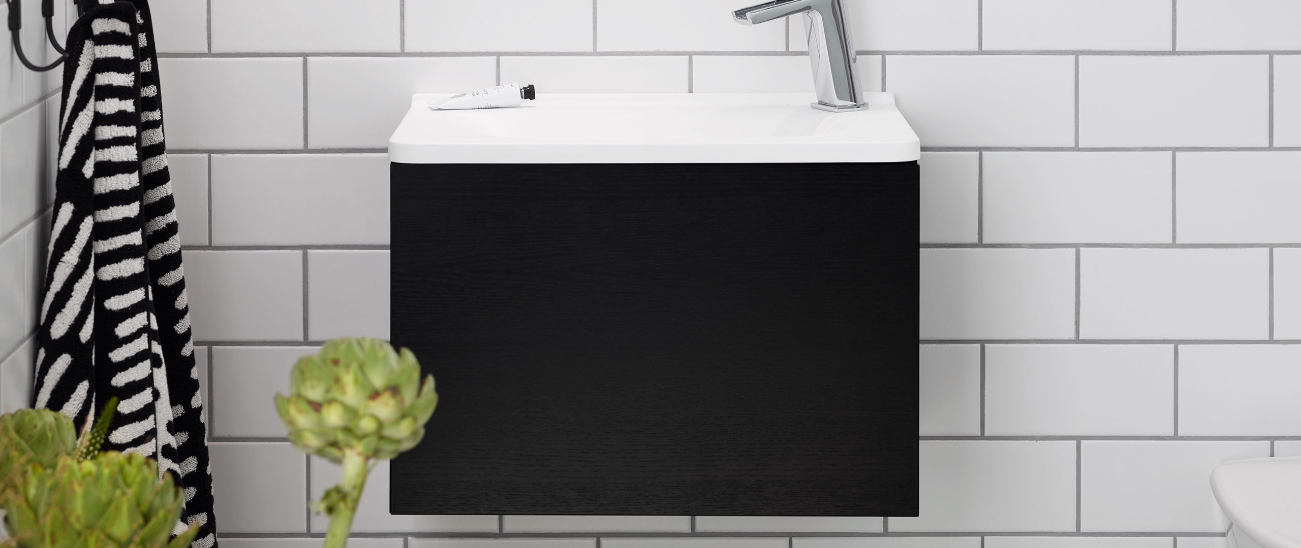 Naturkänsla med dramatiska toner.Fanerad svartmålad ask är inspirerad av naturen och skapar en taktil träkänsla. Faner är ett levande material och har alltid ett unikt utseende. Svartmålad ask passar särskilt bra med andra dramatiska färger – och för dig som vill ha en inredning som går i en modern och elegant stil. En elegant och dramatisk kulör.
