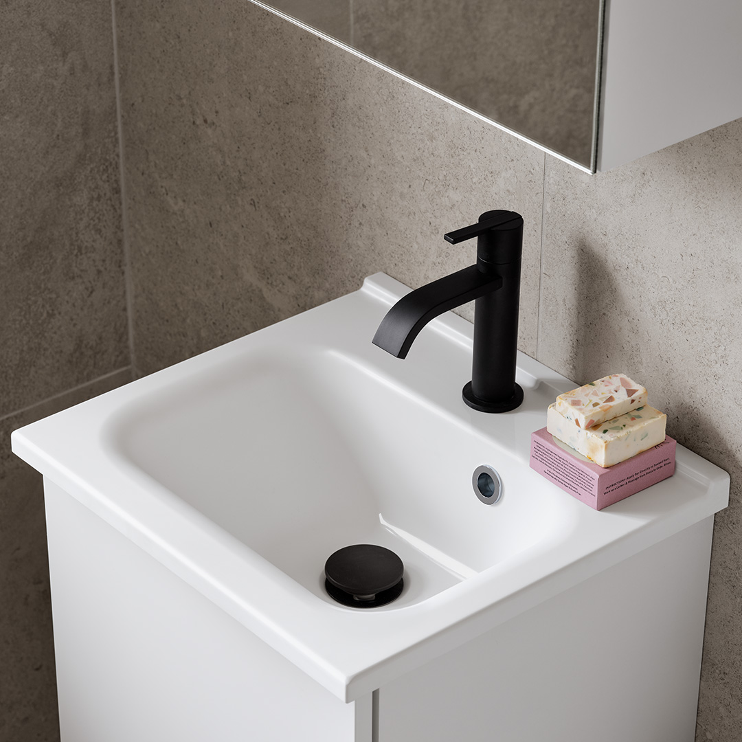 Ett stilrent tvättställ med raka linjer och optimala proportioner som passar perfekt i alla badrum.