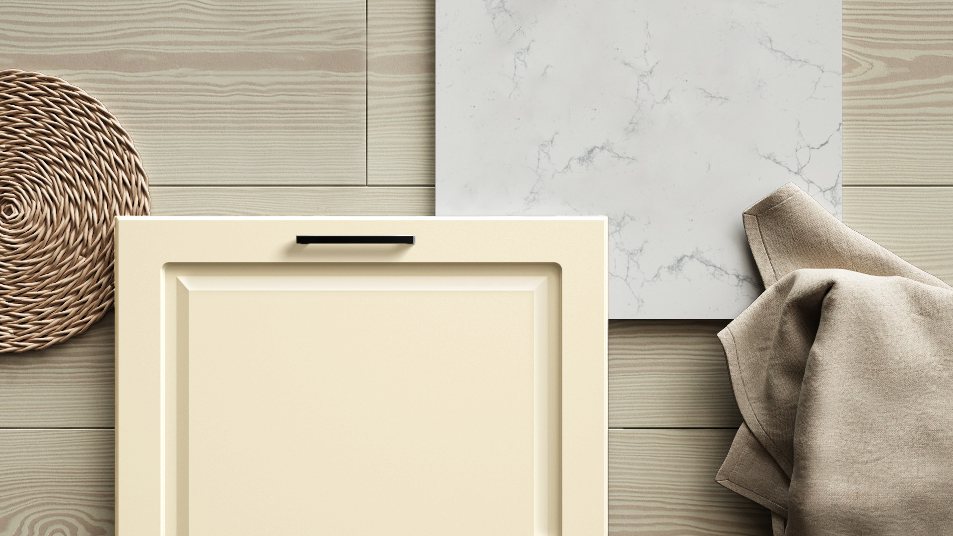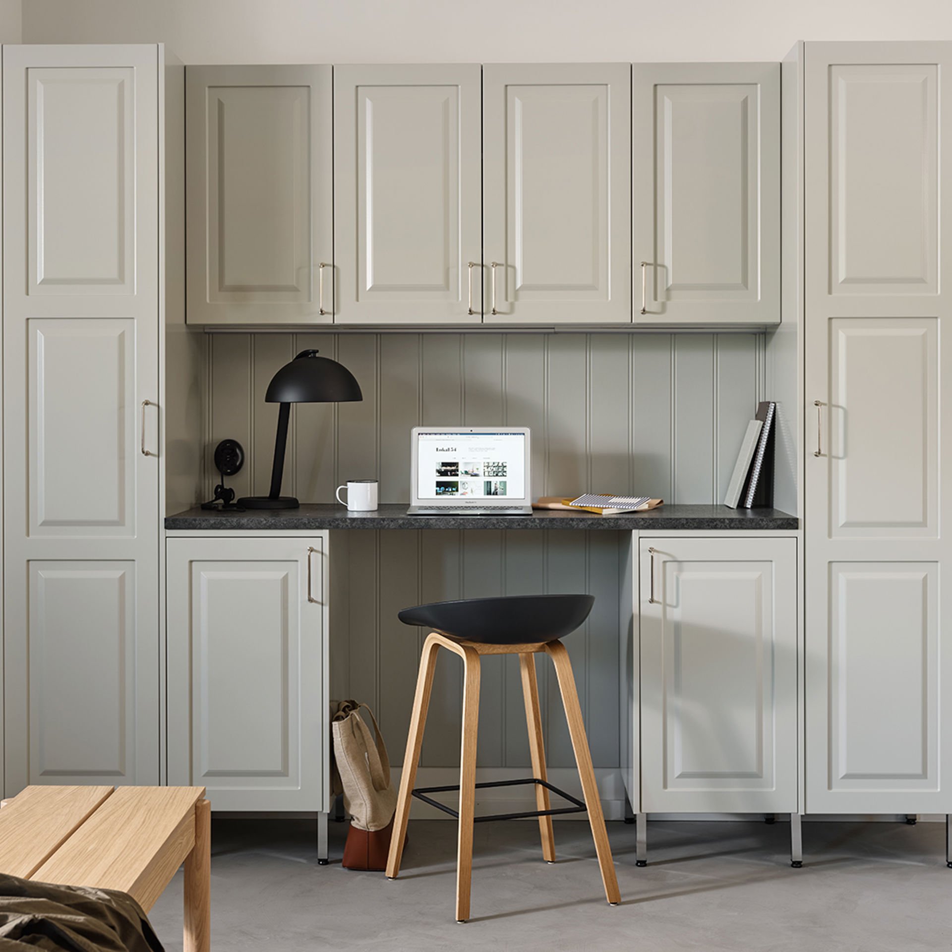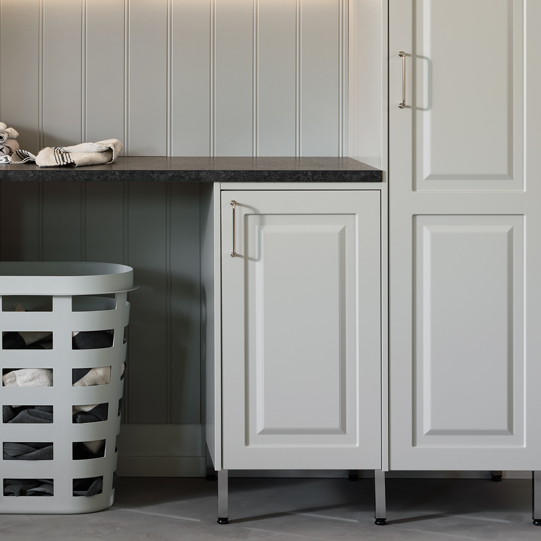 Målad lucka av 19 mm MDF-board med fräst profil och svagt rundad kant. Levereras i alla kulörer mot kulörtillägg med några få undantag. Finns också i spröjsad vitrin med klarglas. Toppvitrin finns till skåp i höjd 988 och 1138 mm i tre bredder med klarglas.