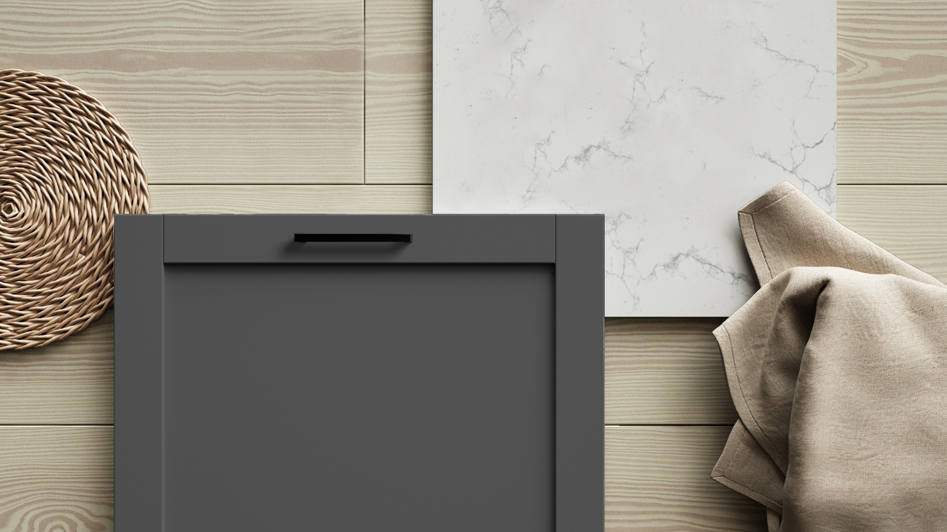 Målad lucka av 19 mm MDF-board med ram och slät spegel, svagt rundad kant. Levereras i alla kulörer mot kulörtillägg med några få undantag. Finns också i vitrinlucka med klarglas, med eller utan spröjs.