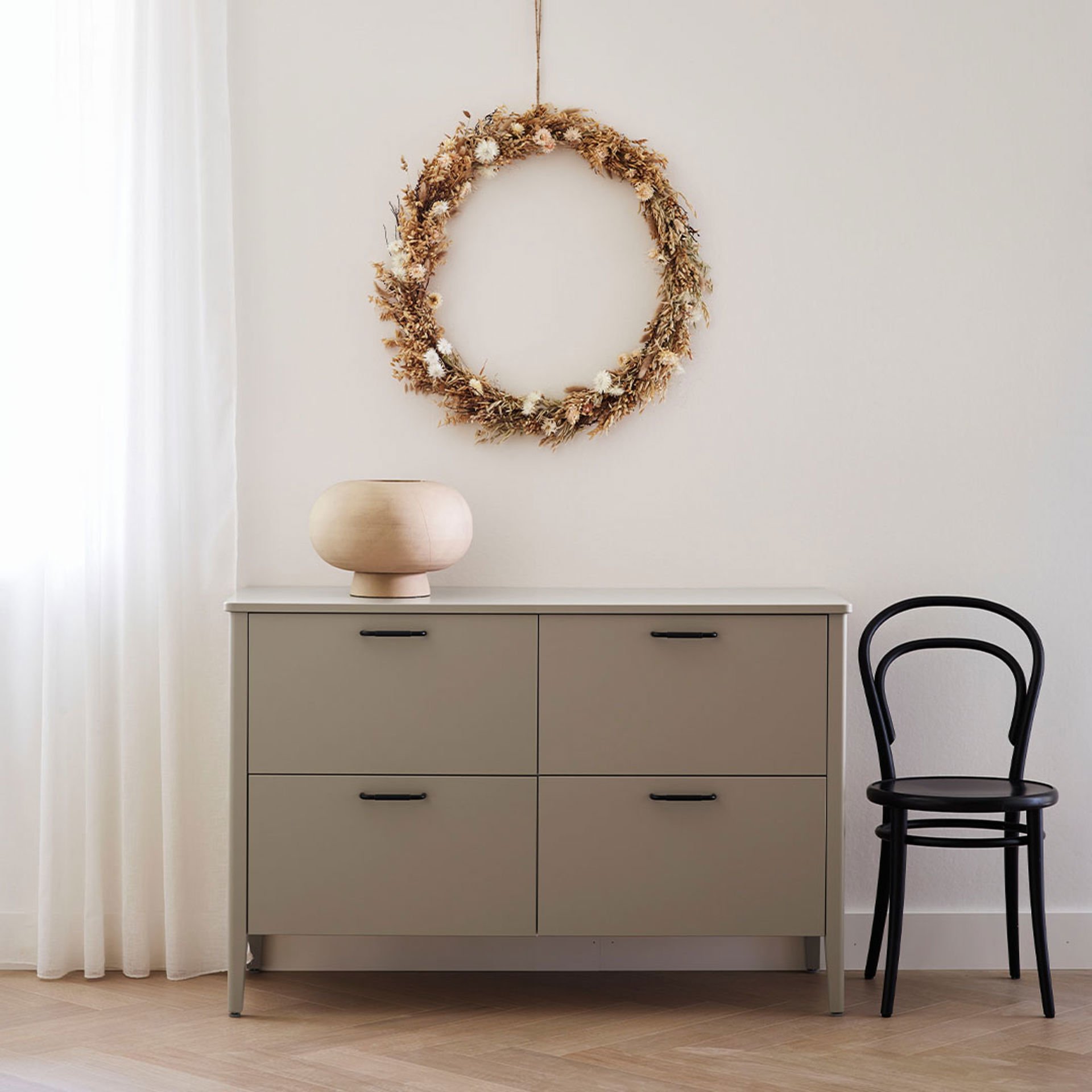 Moa finns även som vitrinlucka utan spröjs som passar en modern stil – eller kombinera med Alice vitrin med spröjs för en mer traditionellt skandinavisk stil.