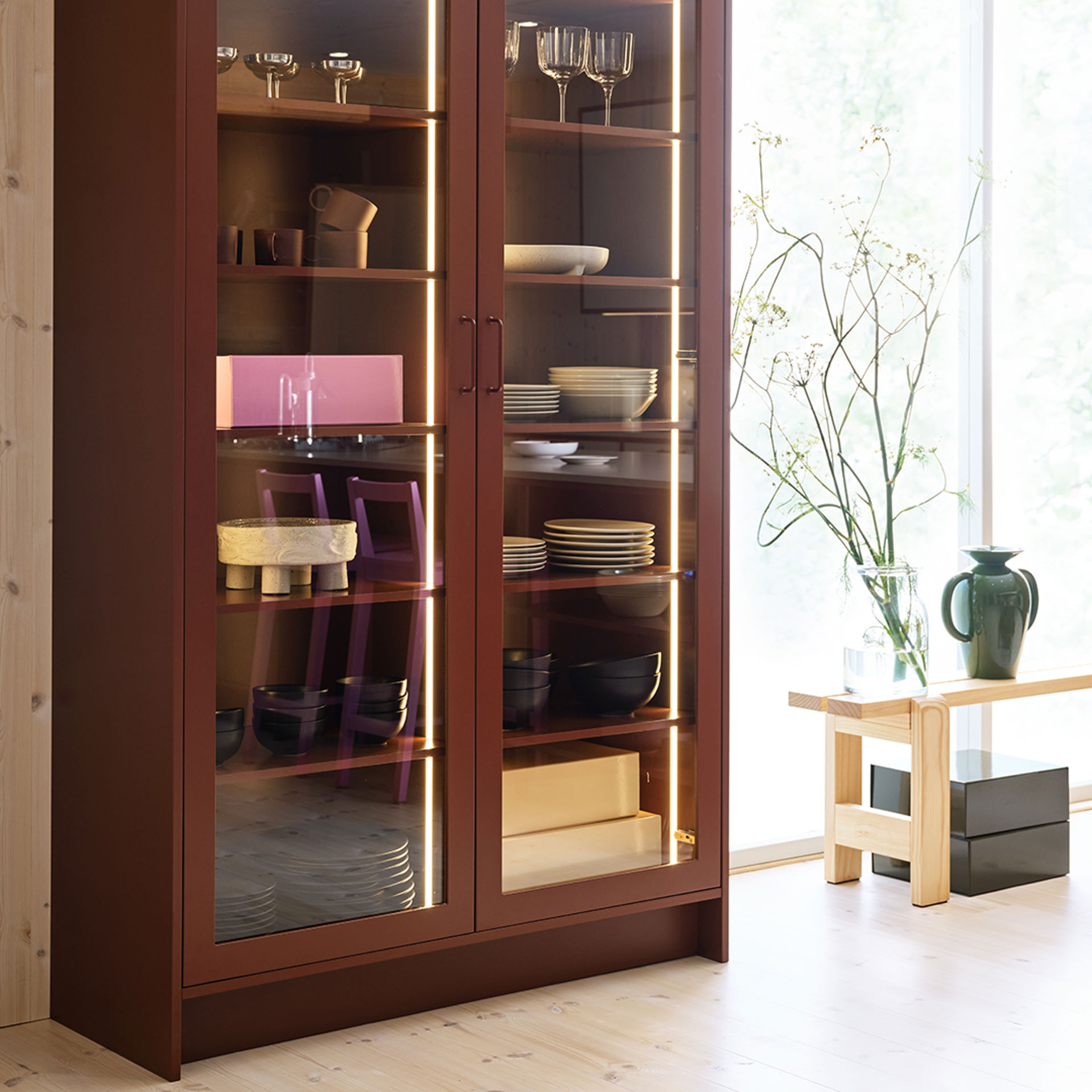 Moa finns även som vitrinlucka utan spröjs som passar en modern stil – eller kombinera med Alice vitrin med spröjs för en mer traditionellt skandinavisk stil.