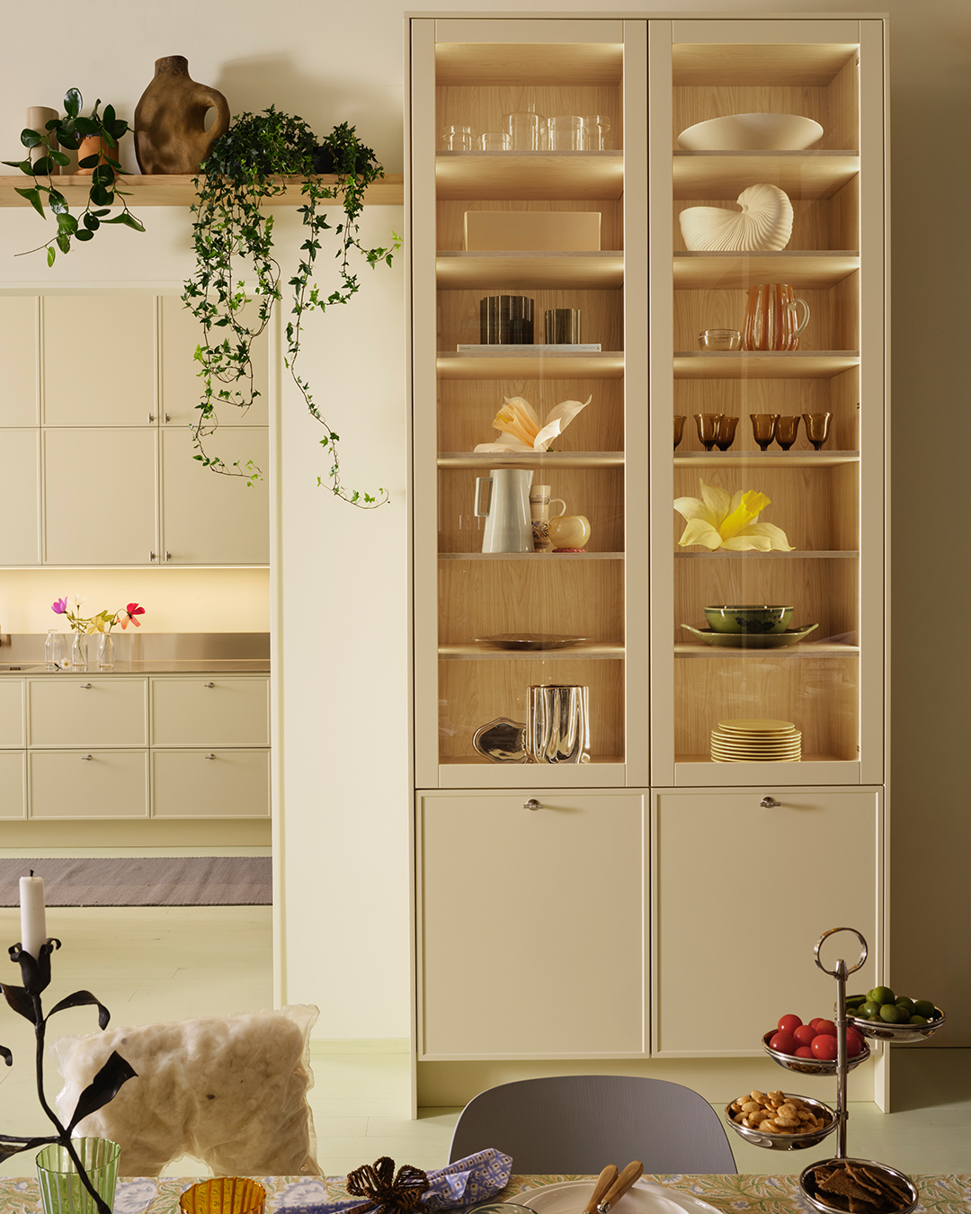 Genom att addera textur, form och material vill han skapa han en varm och inspirerande helhet där varje detalj känns viktig och andas omtanke. Det är en ambition som vi delar och känner igen oss i. Därför är vi glada över att Dennis tillsammans med oss skapat våra nya cremegula kök och badrum, så vi kan berätta nya historier om vår gemensamma omtanke för det personliga hemmet.
