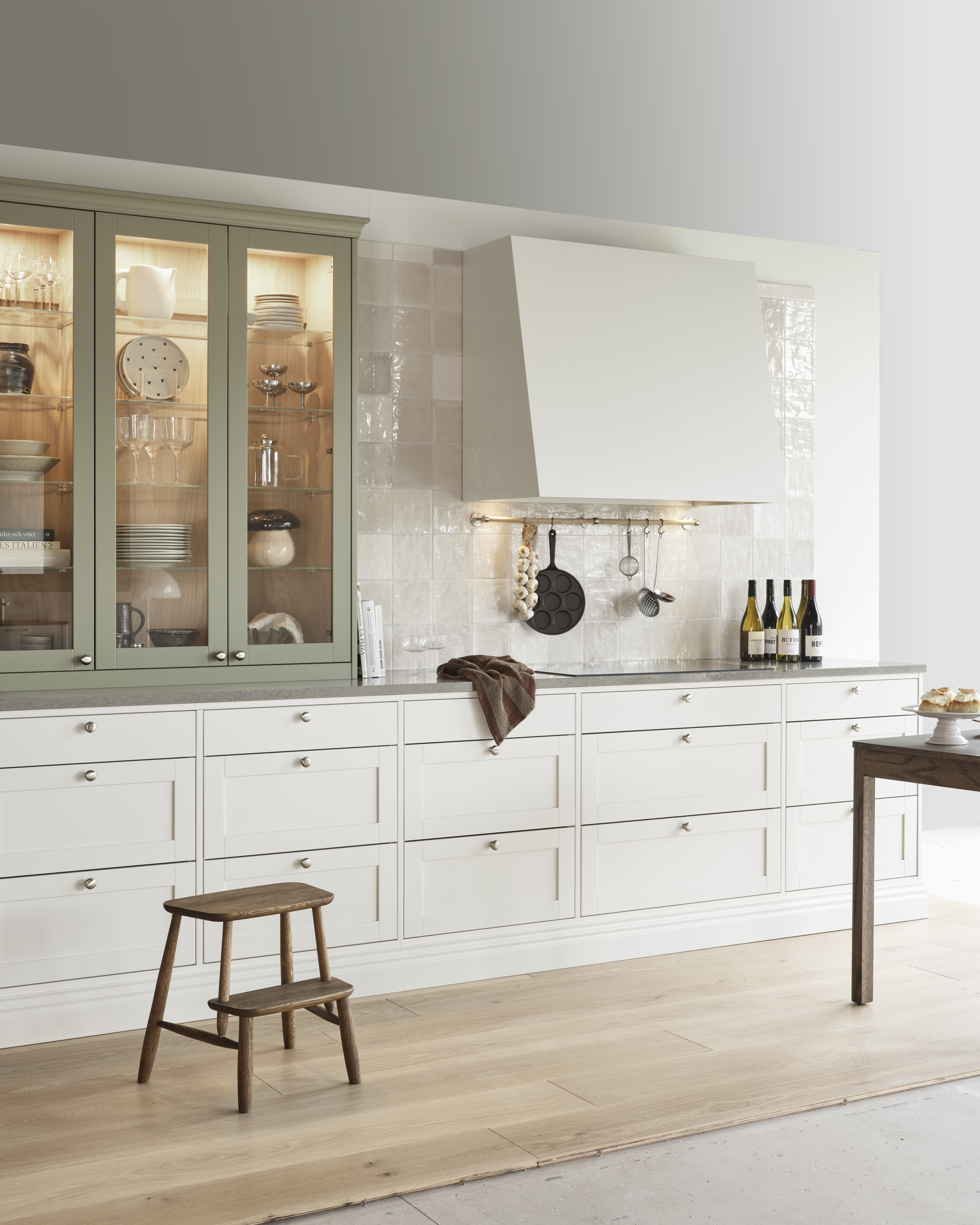 Nytt är även vackra bänkskåp med vitrin som går hela vägen ner till sockel.