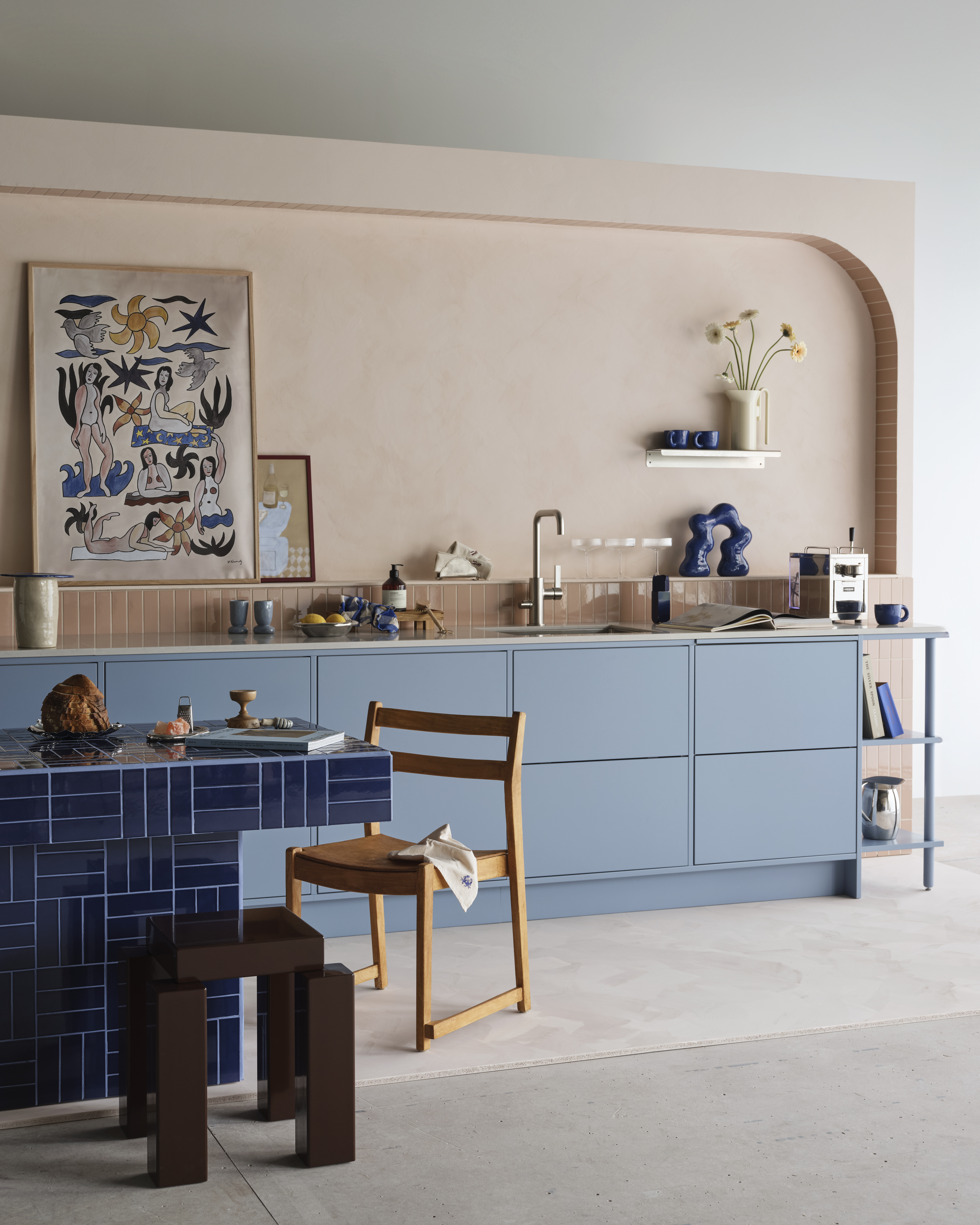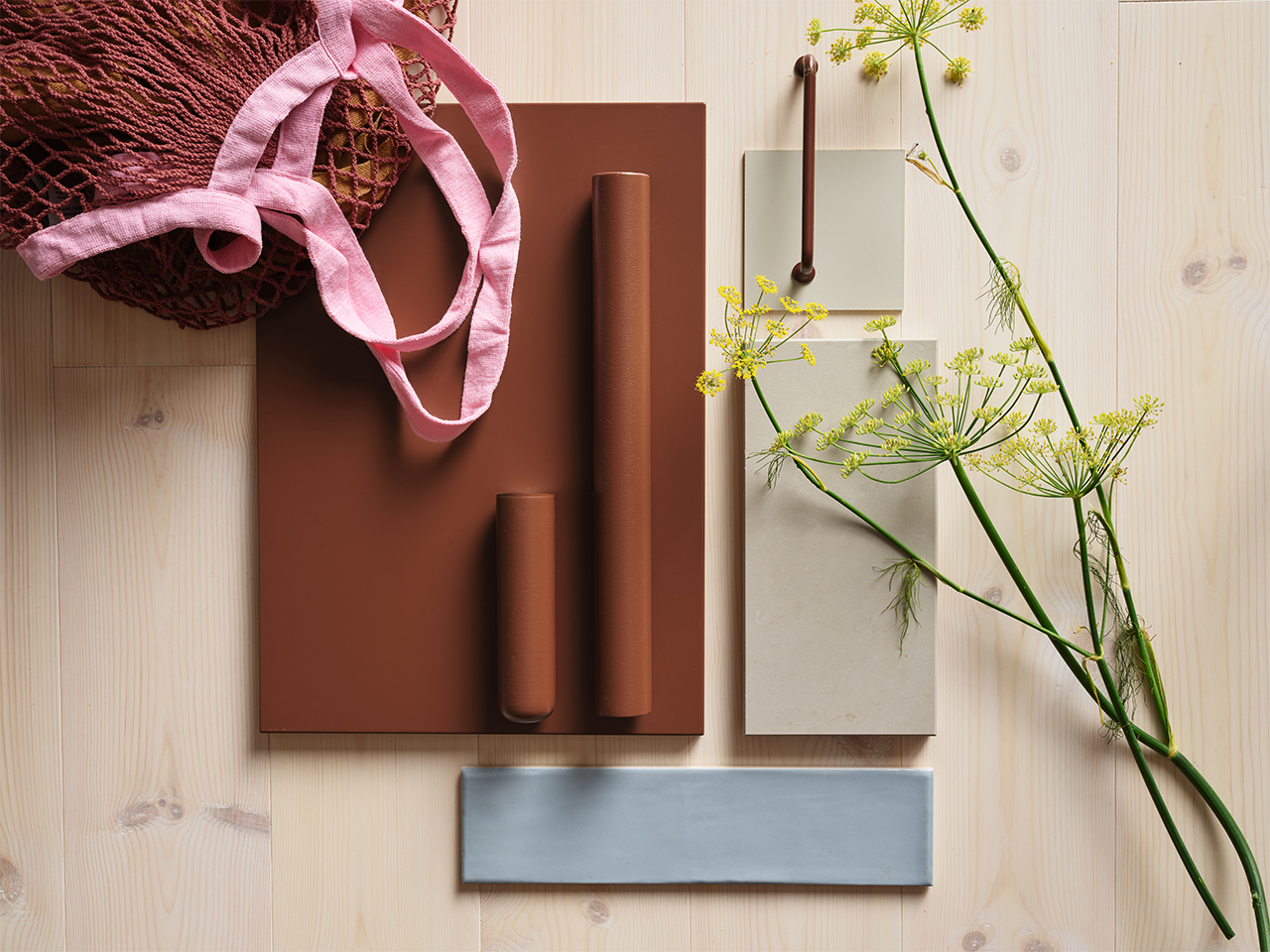 Inspirationen till köket kommer från ledorden kärlek, omtanke och det lilla extra. Köket har en skandinavisk lekfullhet med fina detaljer och varm inramning. Vår kulörnyhet jordröd passar fantastiskt fint ihop med vår mjuka och stilrena kulör linnebeige. Tillsammans med himmelsblåa och knallrosa toner skapas ett personligt och oväntat uttryck. Det tycker jag är uppfriskande.
