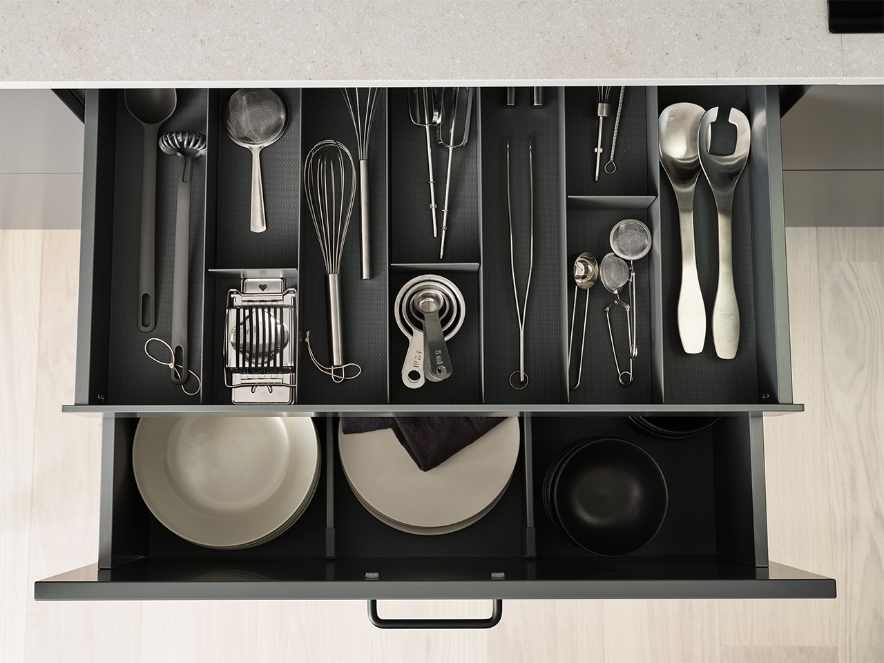 En annan nyhet är att vi lanserar bänkskivor i keramik som är mycket slitstarka, värmetåliga och fläckbeständiga. Vi uppdaterar standardnivån på våra lådor genom att introducera det nya lådsystemet One i en sober antracitgrå kulör och utvecklar hyllsystemet Vilda som kommer i ett högt utförande. Allt för att våra kök ska passa i alla livets situationer och stunder.