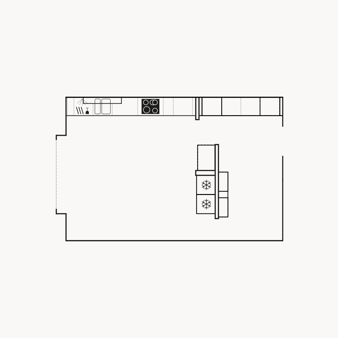I det här moderna köket använder vi vår Svanenmärkta lucka Nora. Den är utvecklad för att minimera miljöpåverkan och har en tydlig livfull textur. I köket finns även en svart laminatbänkskiva, smart förvaring i form av bänkskåpsutdrag och ett städskåp. Svarta detaljer som handtag och hyllplan skapar ett distinkt uttryck.