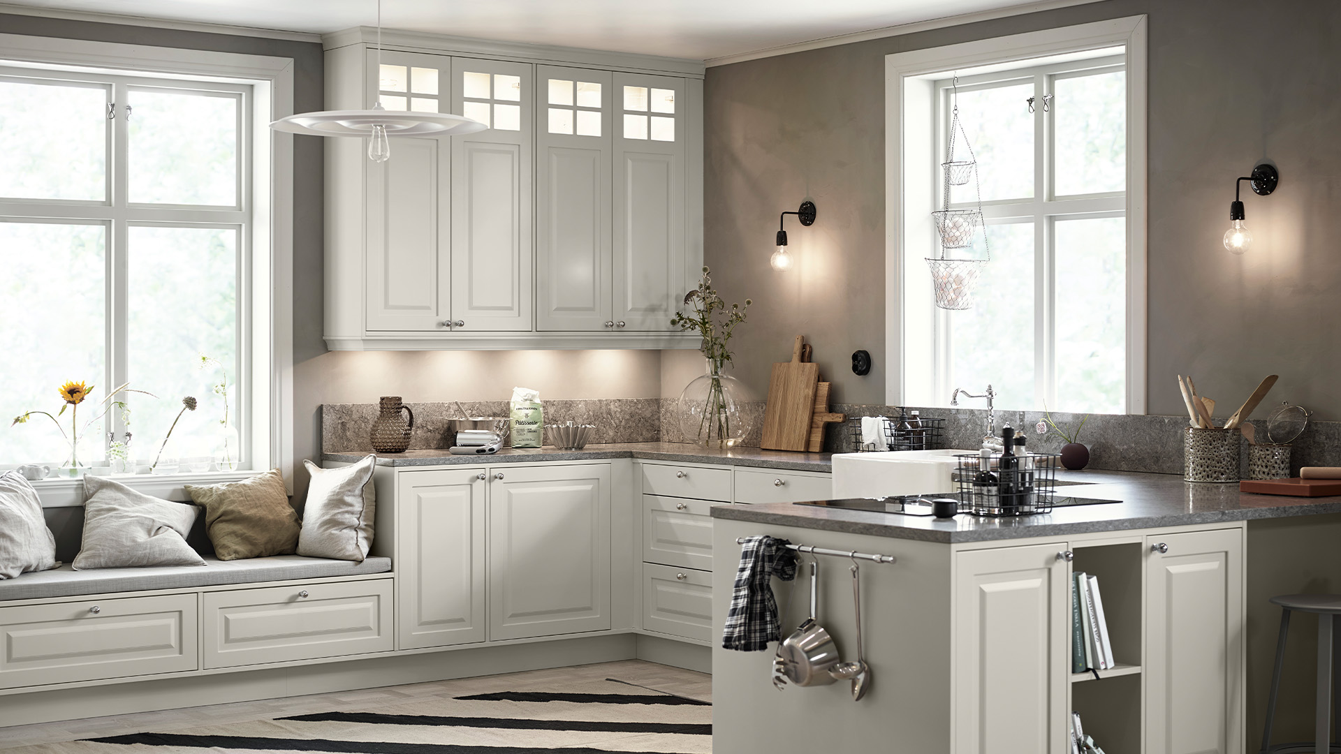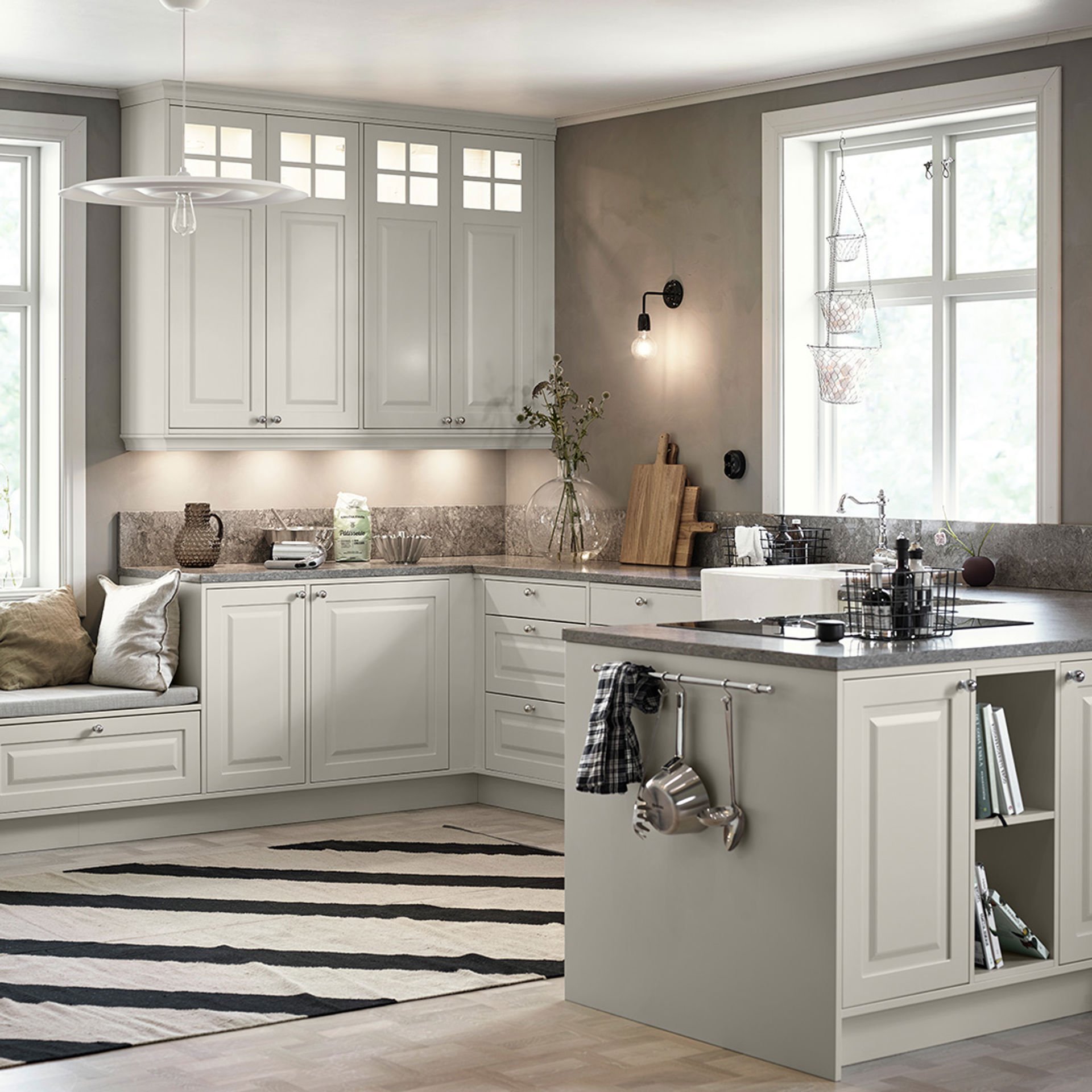 Alice finns även som vitrinlucka med spröjs eller toppvitrin, vilket ger möjlighet att skapa variation och ett luftigt intryck – eller förstärka det klassiska uttrycket ytterligare. Ett fint sätt att ge köket en personlig prägel.