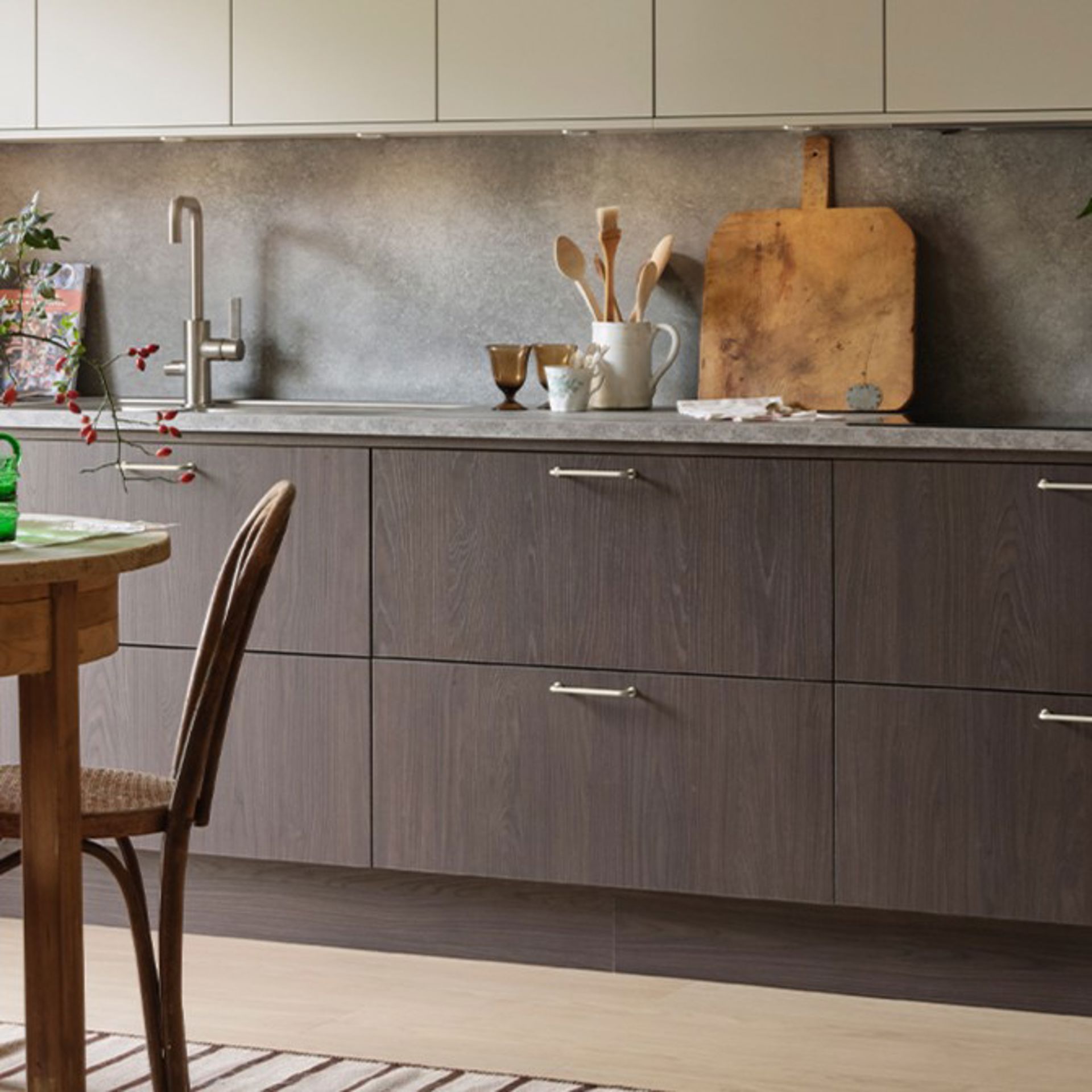 Luckan Ilse har ett mjukt och harmoniskt uttryck som förstärker den naturliga känslan i rummet. Den Svanenmärkta melaminytan är slitstark, lättskött och finns både i beige, grå, vitpigmenterad ek och brun ek för ett varmt och hållbart helhetsintryck. Passar dig som vill ha ett enkelt, tidlöst kök med en naturlig och beständig känsla.