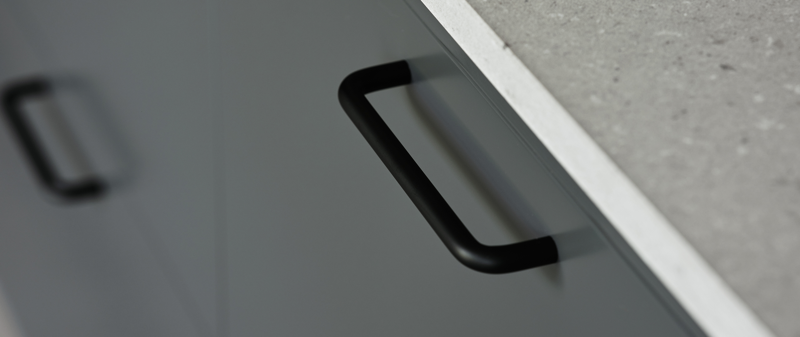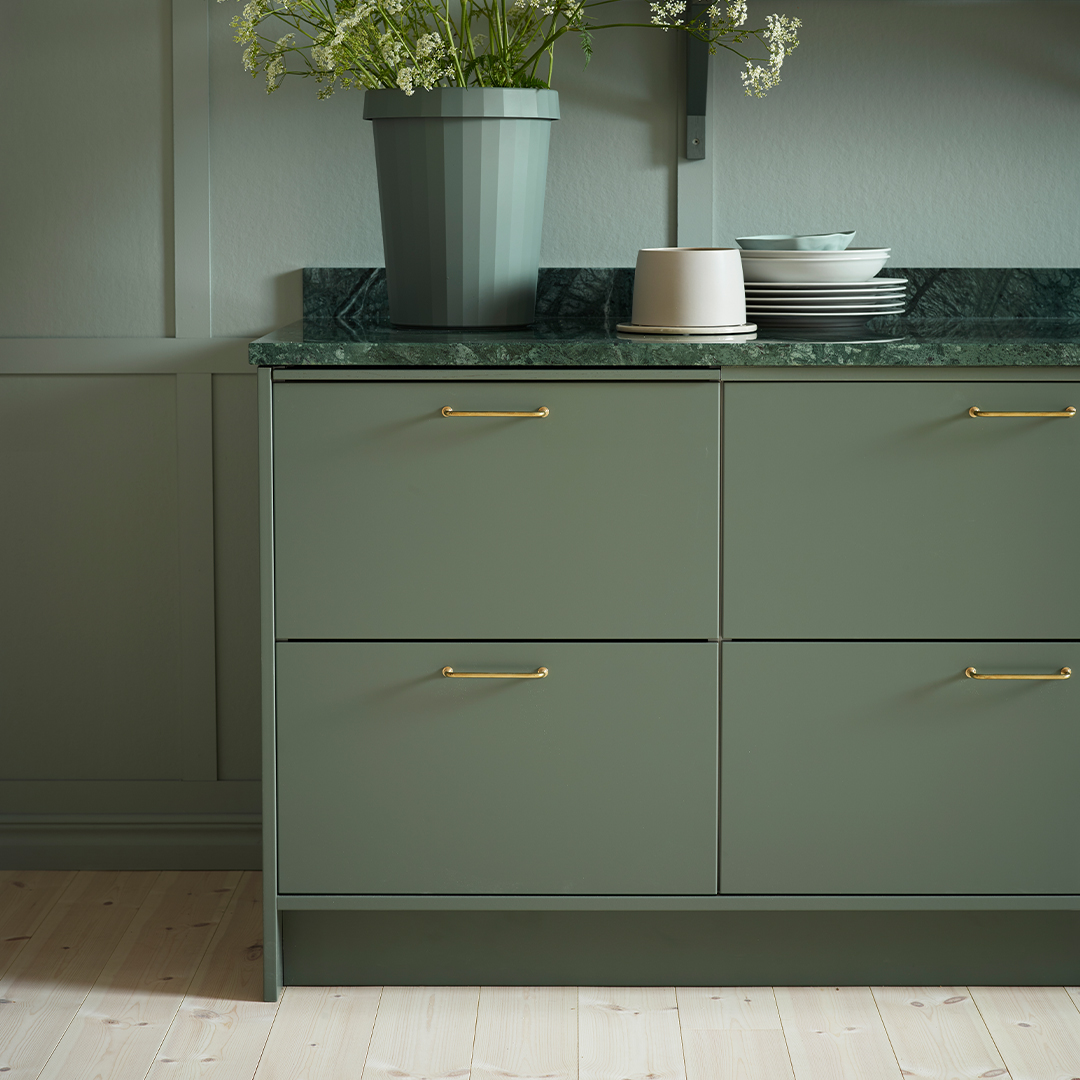 Luckan Maja är en slät lucka som skapar ett lugn och en harmonisk bas för köket. Den svagt rundade kanten ger ett mjukt intryck som balanserar det stilrena – en liten detalj som gör stor skillnad.