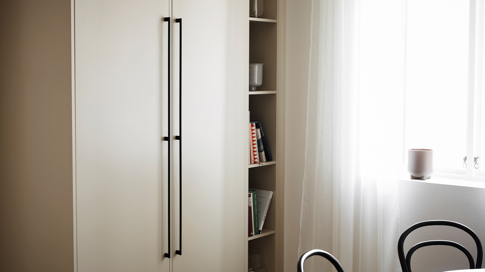 Moa finns även som vitrinlucka utan spröjs som passar en modern stil – eller kombinera med Alice vitrin med spröjs för en mer traditionellt skandinavisk stil.