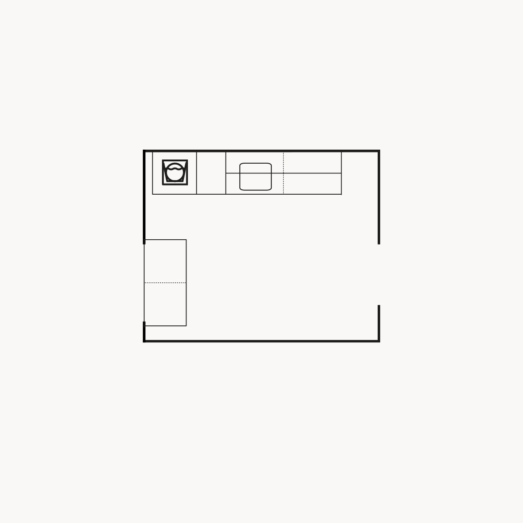 Detta är en ljus och inbjudande tvättstuga med luckan Maja i betonggrått. Modernt och stilrent i både funktion och uttryck med vår bänkskiva i laminat, kakel som stänkpanel, gott om förvaring och praktisk sittbänk/avställningsyta. Här vill alla hjälpa till med tvätten!