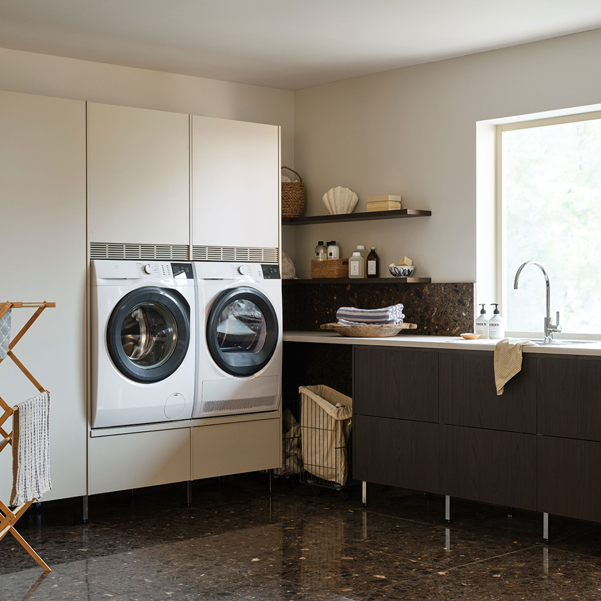 Luckan Ilse har ett mjukt och harmoniskt uttryck som förstärker den naturliga känslan i rummet. Den Svanenmärkta melaminytan är slitstark, lättskött och finns både i beige, grå, vitpigmenterad ek och brun ek för ett varmt och hållbart helhetsintryck. Passar dig som vill ha en enkel, tidlös tvättstuga med en naturlig och beständig känsla.